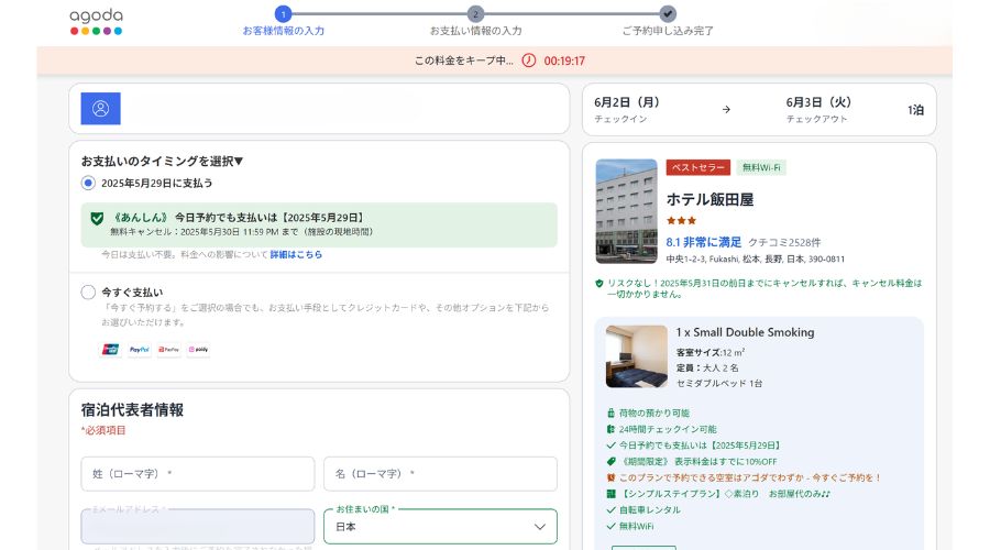 予約完了前に、宿泊施設名、宿泊日程、部屋タイプ、料金、支払い方法などの詳細を必ず確認しましょう。
