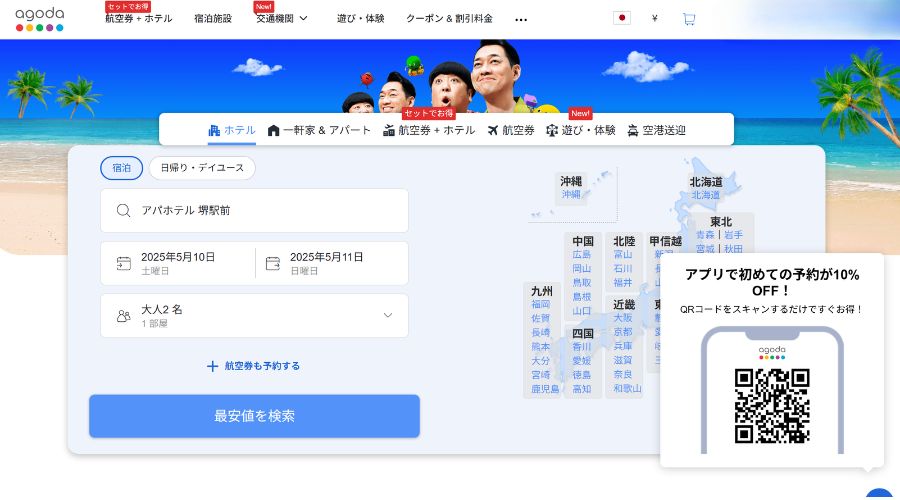- agodaの公式サイトまたはアプリのトップページにアクセス